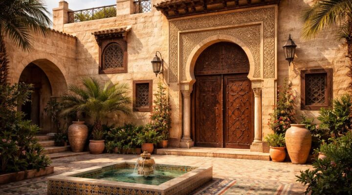 Dans le domaine de l’architecture islamique, la conquête musulmane a engendré un profond bouleversement. Elle a introduit des espaces publics comme le souk, des hammams et des mosquées, réorganisant complètement la structure urbaine. La kasbah, avec ses ruelles étroites et ses hautes murailles, a été développée, servant de refuge et de centre communautaire. Ce style s’est enrichi de l’architecture andalouse et a incorporé l’usage de motifs géométriques et de décor en stuc.